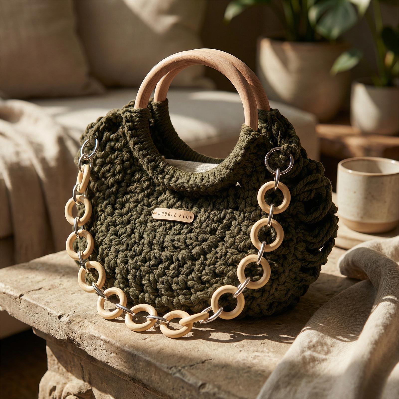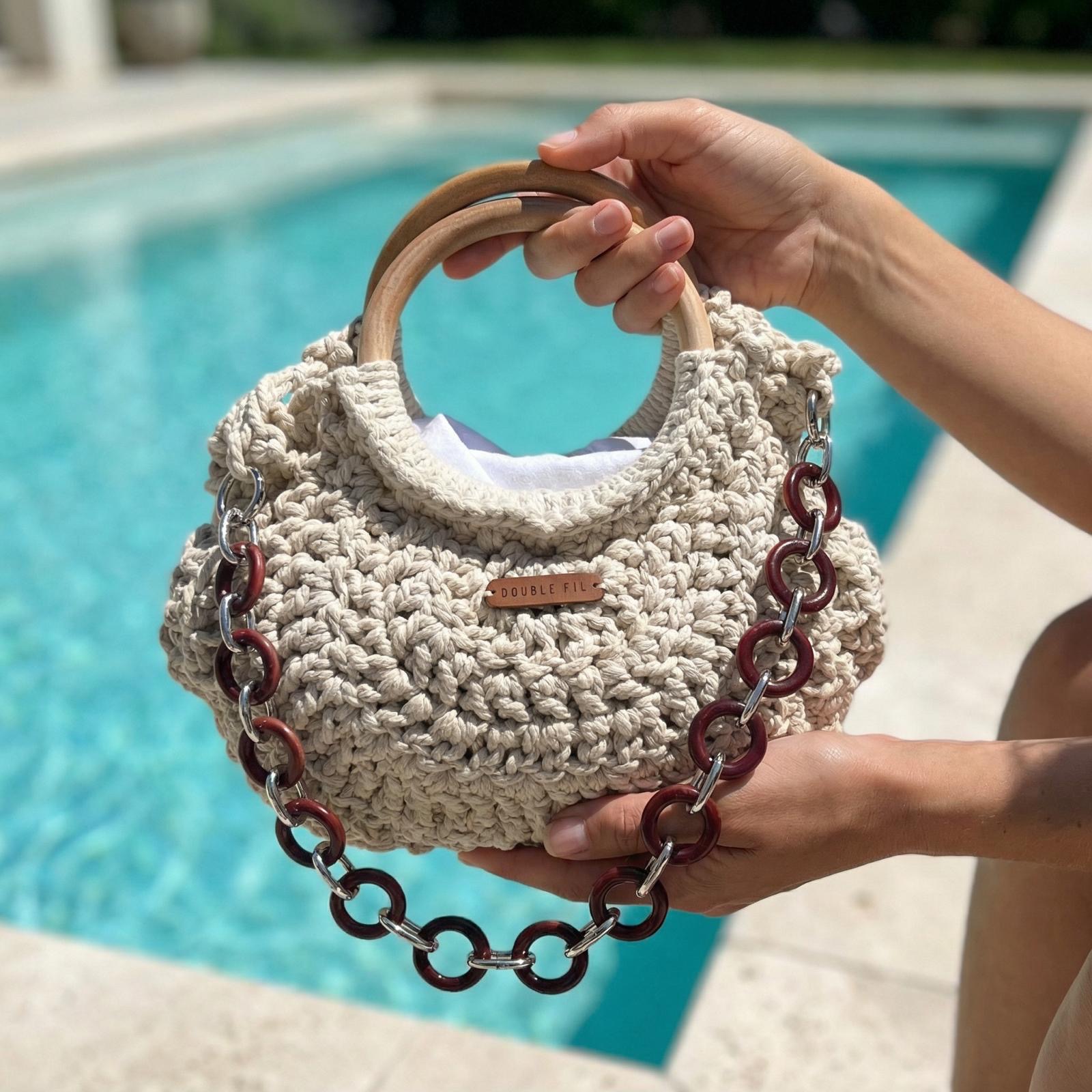 La collection Chic & Chill est conçue pour que vous passiez un été avec un sac à main durable, pratique et sophistiqué. Le sac Double Fil se targue d'une solidité à toute épreuve avec son cordage en coton et ses anses en bois et métal, sans oublier sa doublure en toile de coton et sa fermeture aimantée. Par ailleurs, ce modèle peut se personnaliser au grès de vos envies. Fabrication à la main, fabrication française. Matières : 100 % Coton, 100% bois et métal.