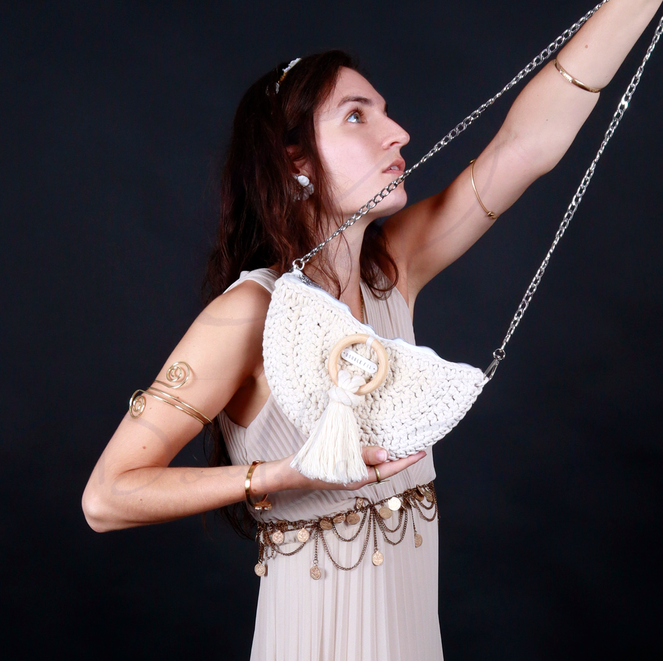 Délicatement crocheté en corde de coton avec intérieure soie pour un toucher encore plus exquis.