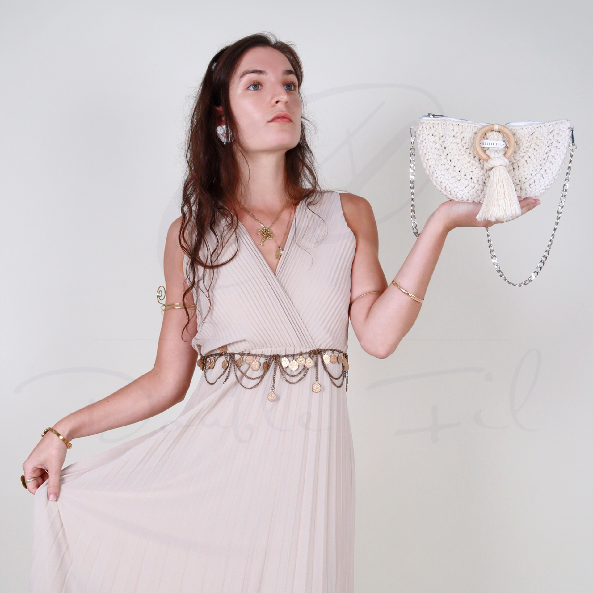 Chaînette amovible en métal inoxydable argent pour un porté épaule.