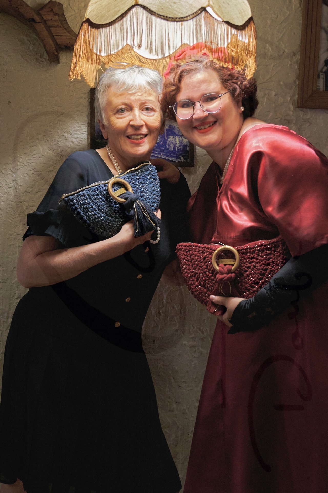 Pochette portée main, or et vin rouge pour briller de mille feux le soir de Noël ou après.