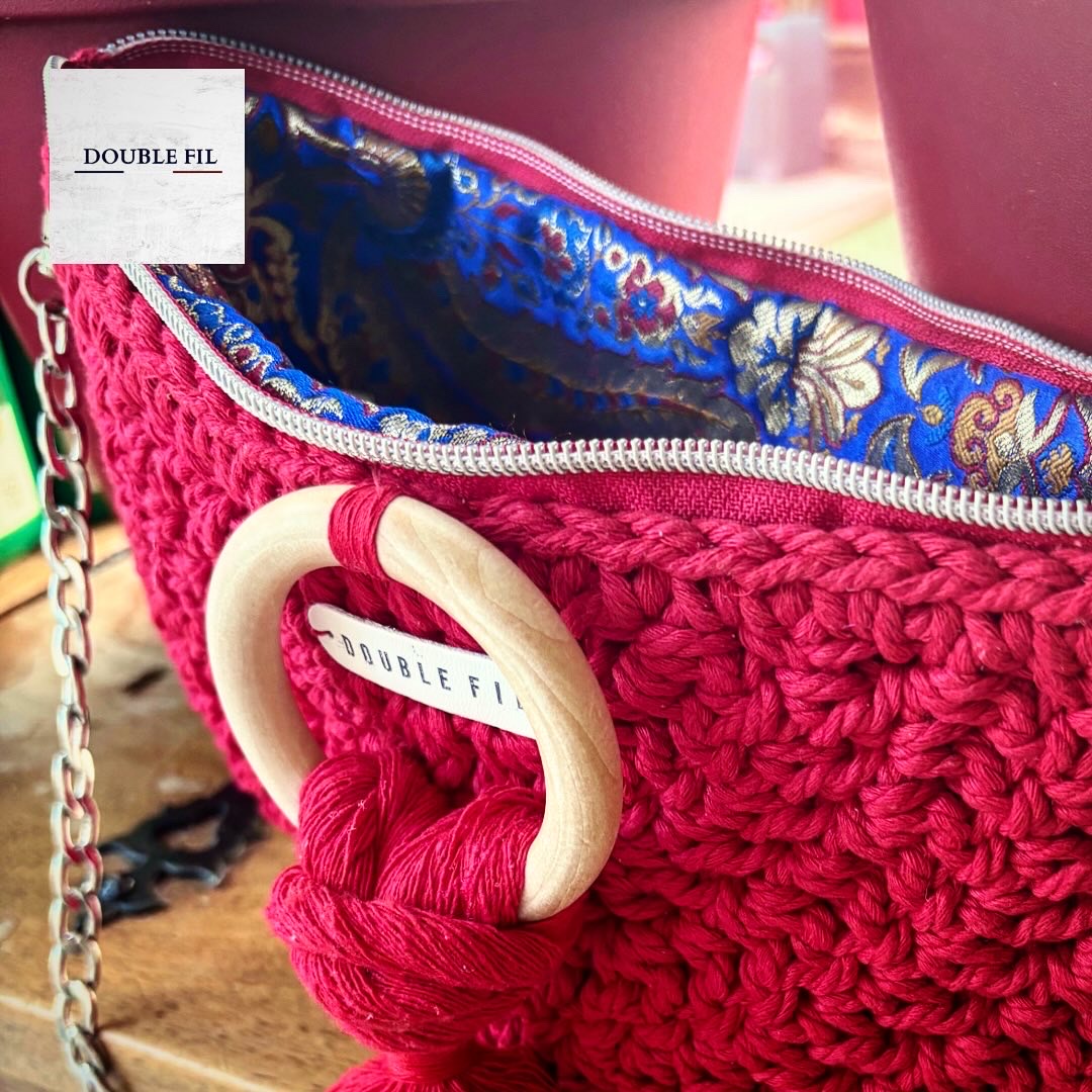 Délicatement crocheté en corde de coton avec une doublure en soie pour un toucher encore plus exquis.